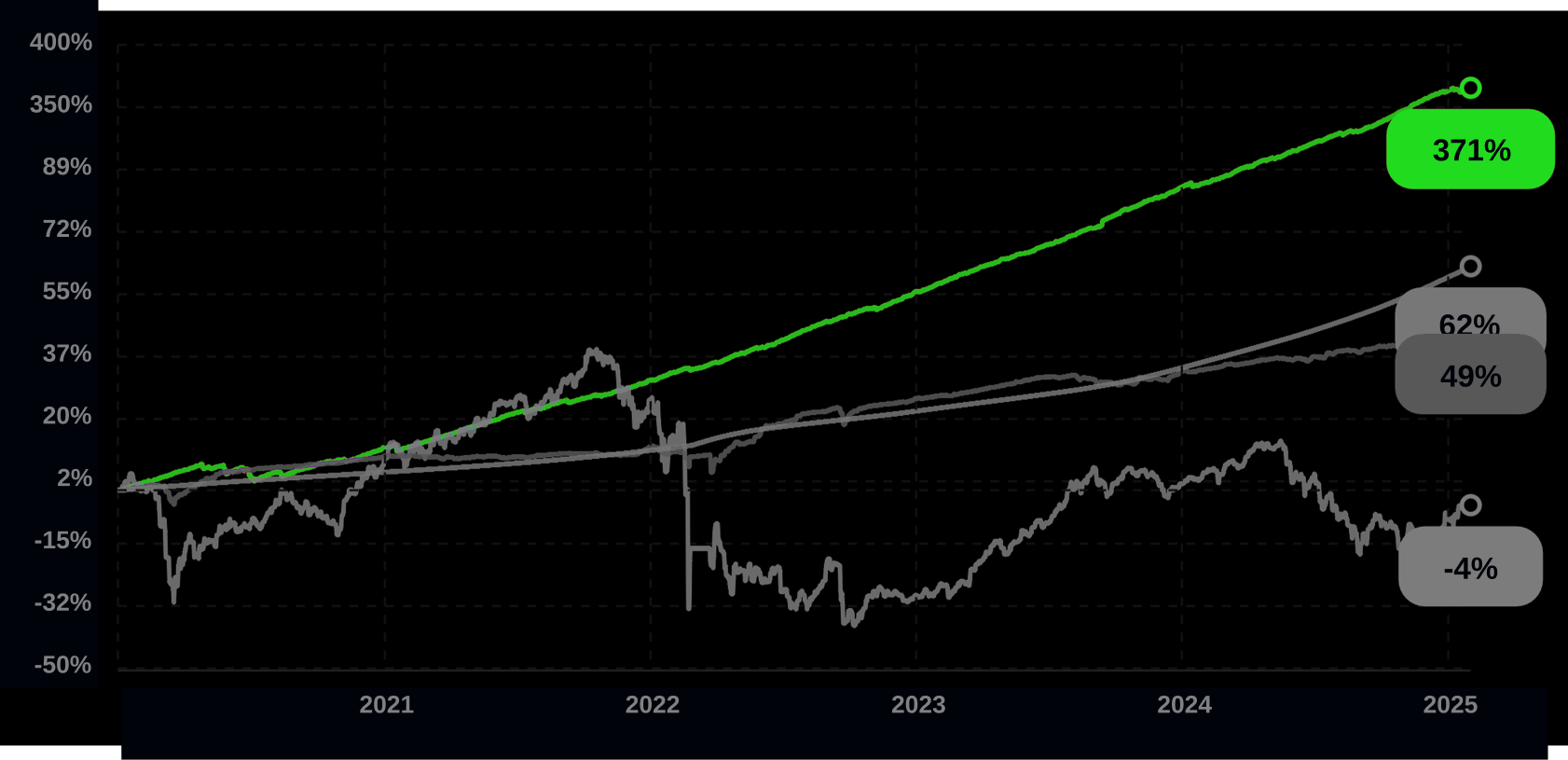 - Доп. заработок — 50$ за каждого привлечённого клиента и 5% от его чистой прибыли.